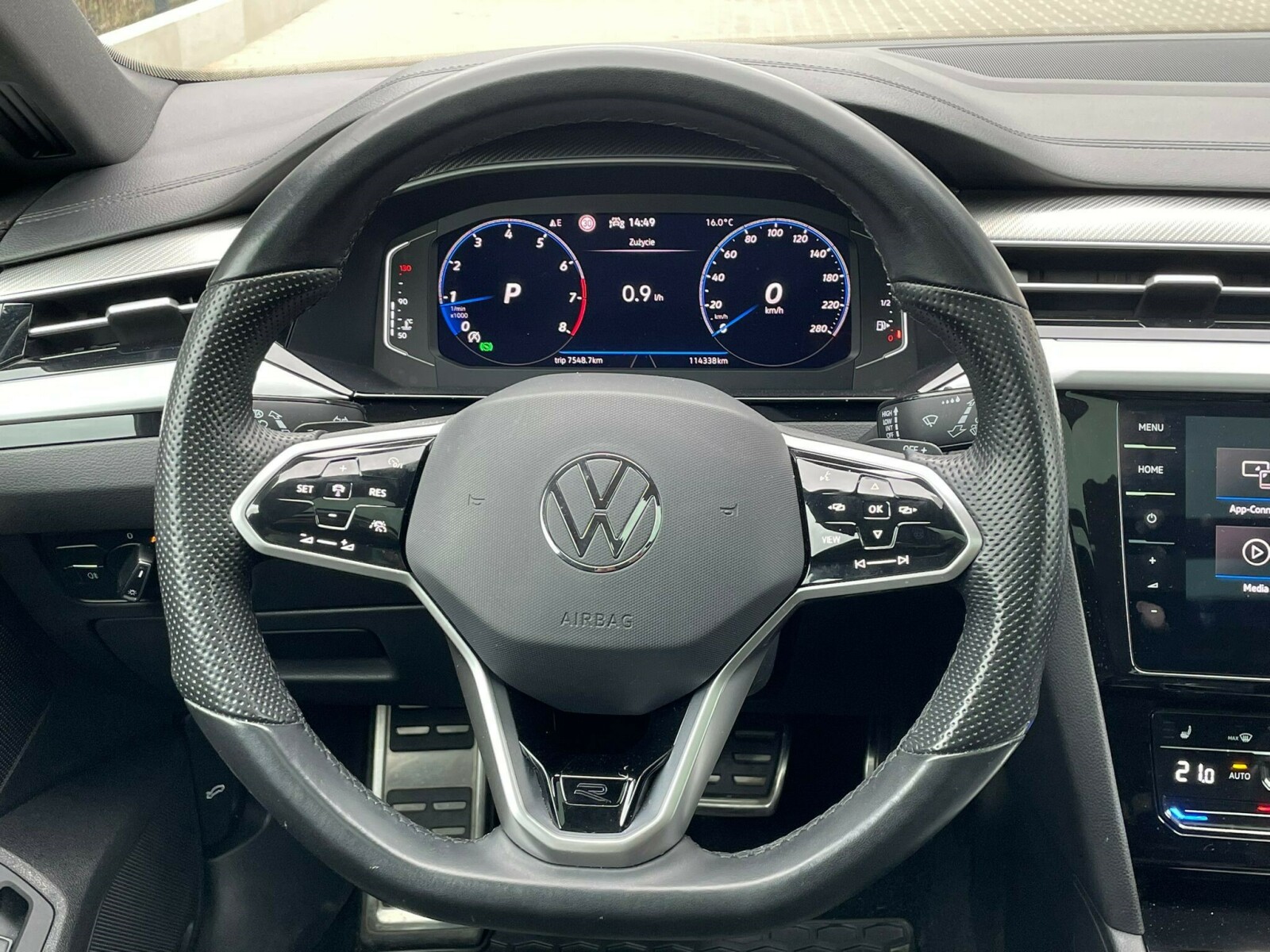 Pakiet Business Premium (Czytnik kart SDHC 2 szt., Dysk twardy 64GB, Fotele tylne podgrzewane, Funkcja obsługi głosowej, Głośniki 8 szt., Gniazdo 230V w tylnej części konsoli środkowej, Instalacja telefoniczna Comfort z funkcją ładowania indukcyjnego, Instalacja telefonu GSM (Bluetooth), Klimatyzacja automatyczna Air Care Climatronic, trzystrefowa z filtrem antyalergicznym, Obsługa za pomocą gestów, Przygotowanie do Mobilnego Kluczyka, Radioodtwarzacz DVD, CD, MP3, WMA oraz gniazdem AUX-IN i dwoma USB obsługującymi iPod/iPhone, System App-Connect, System obsługi głosowej, System rozpoznawania znaków drogowych Sign Assist, System Volkswagen Media Control, Wyświetlacz 9,2-calowy dotykowy z czujnikiem zbliżeniowym, Złącze USB-C oraz gniazdo do ładowania USB)